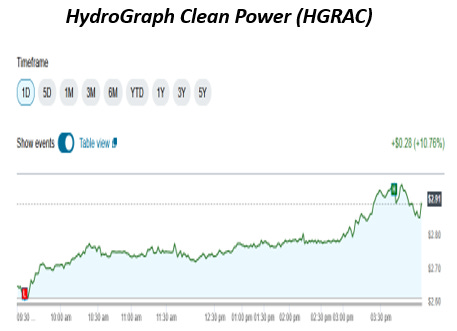 Whatever the case, it seems something may be brewing at HydroGraph. The stock was up 10.76% yesterday and at one point was getting quite near US$3.00.